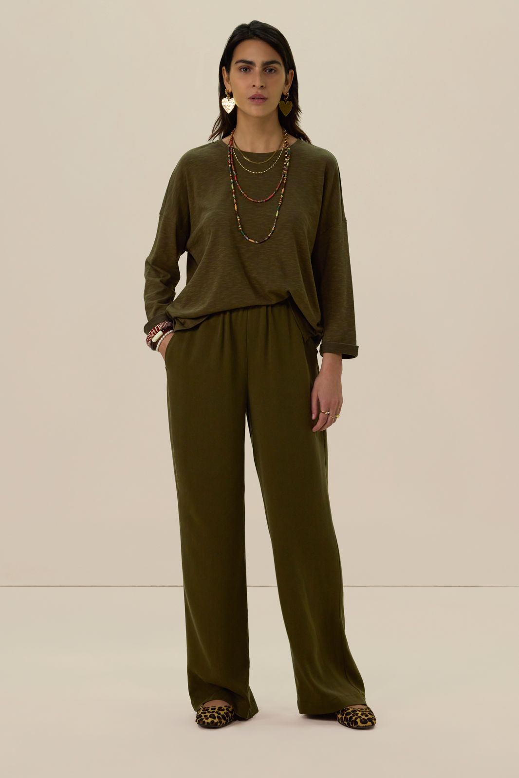 Donkergroene mid waist jersey broek