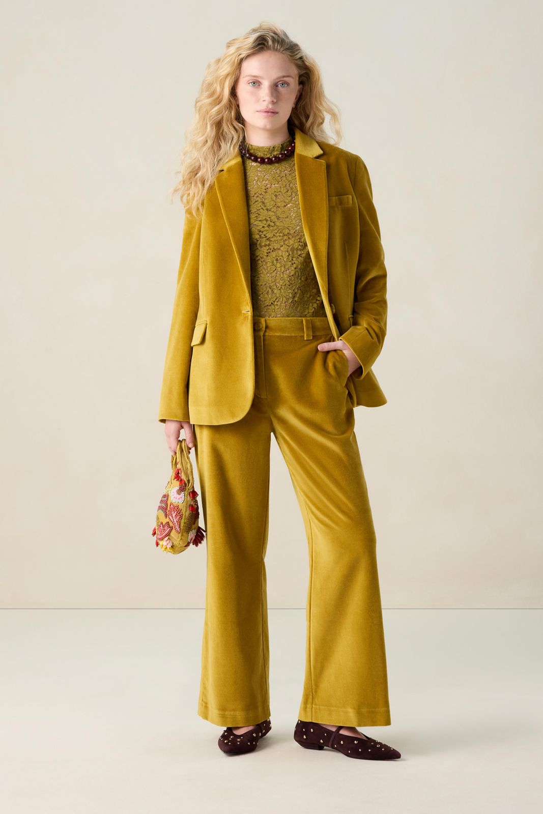 Donkergele velvet cropped broek