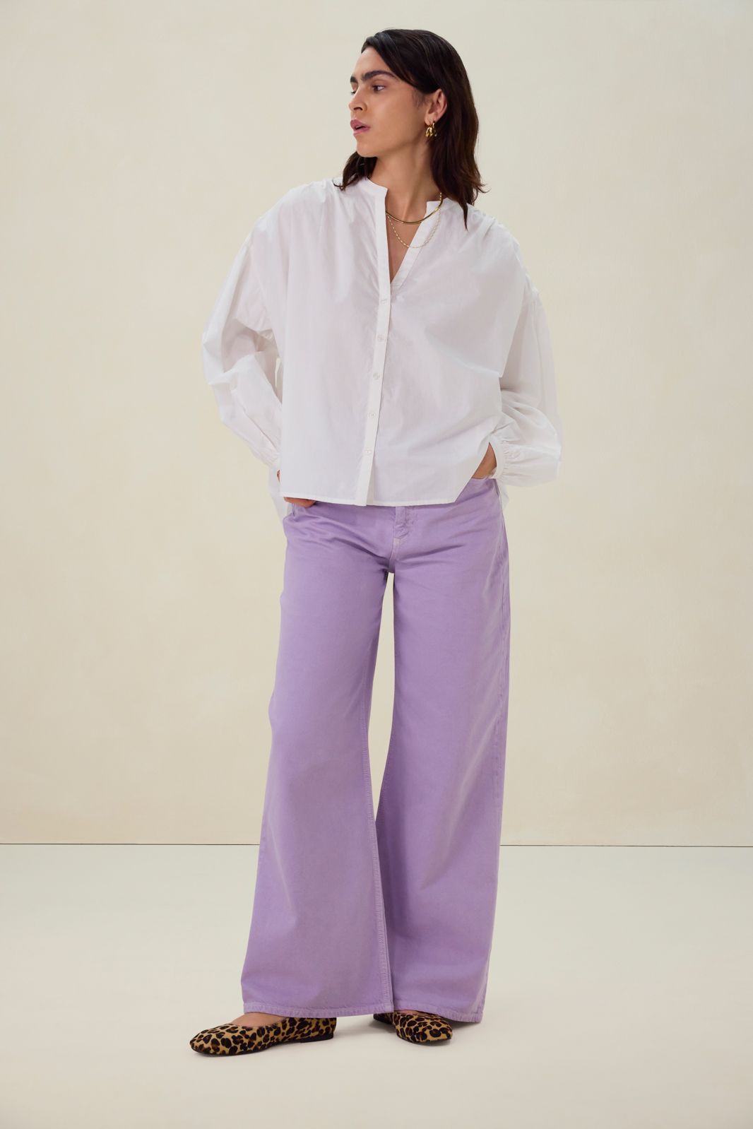 Lichtpaarse high waist wide leg jeans