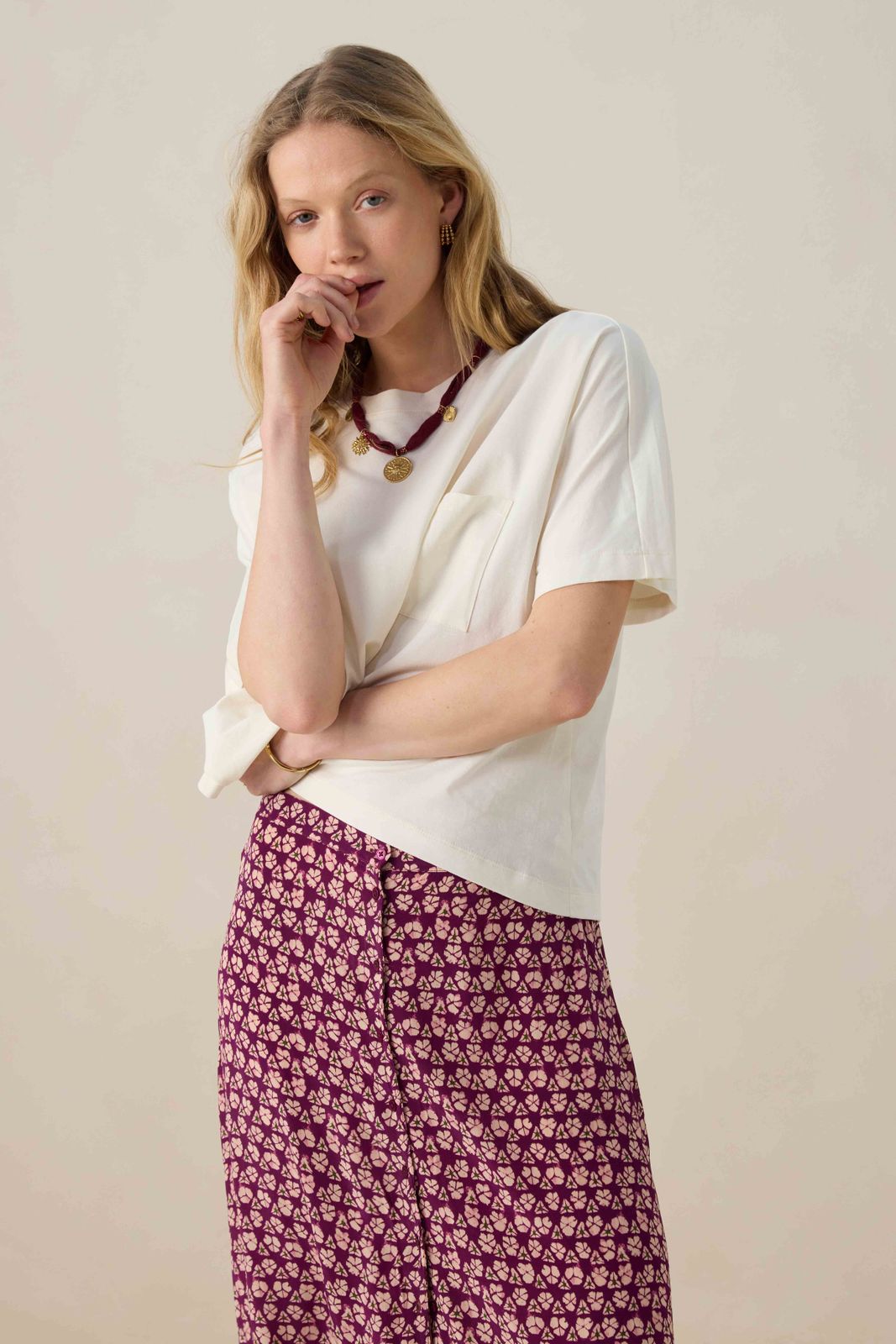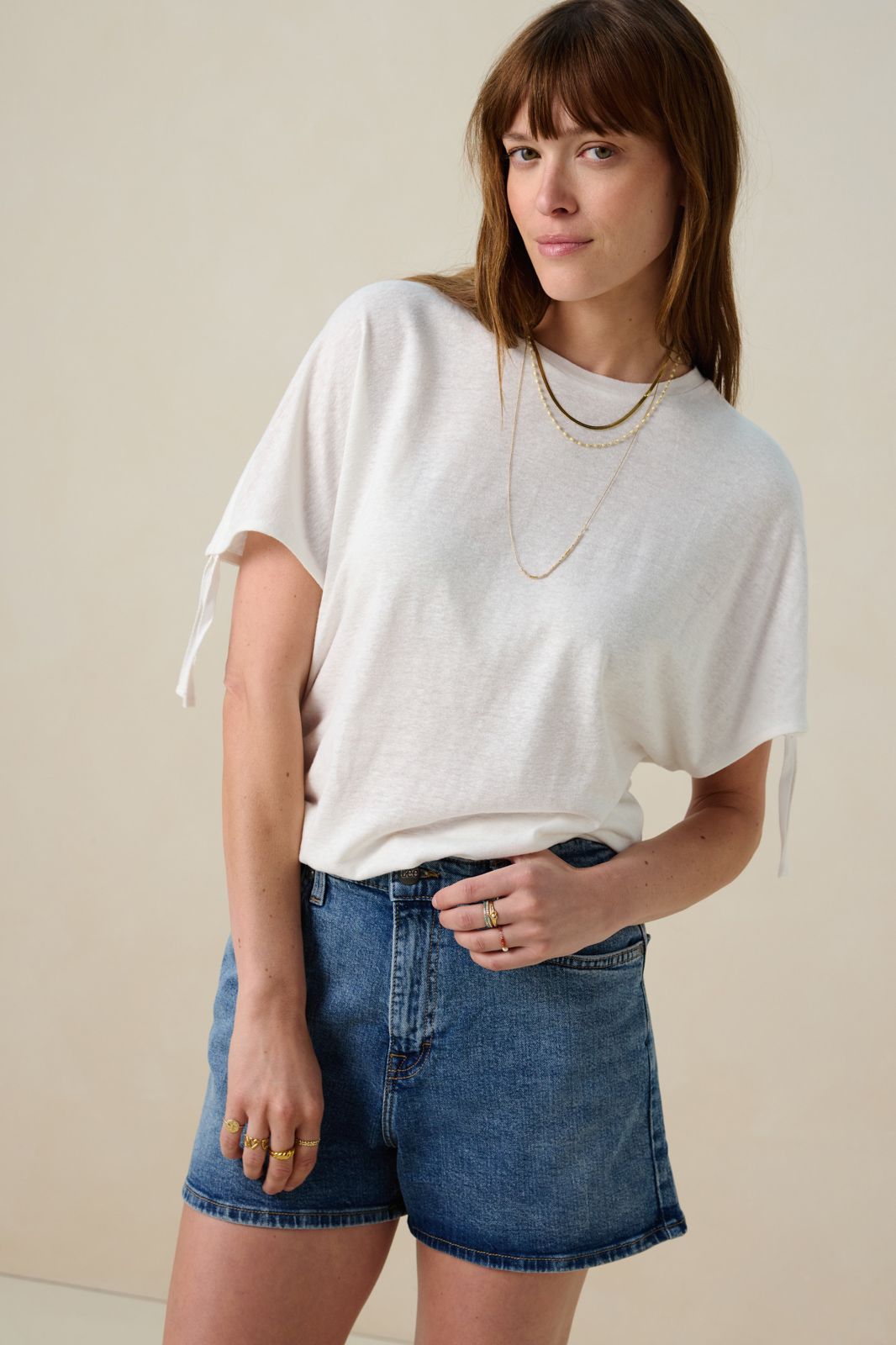 Wit linnenmix T-shirt
