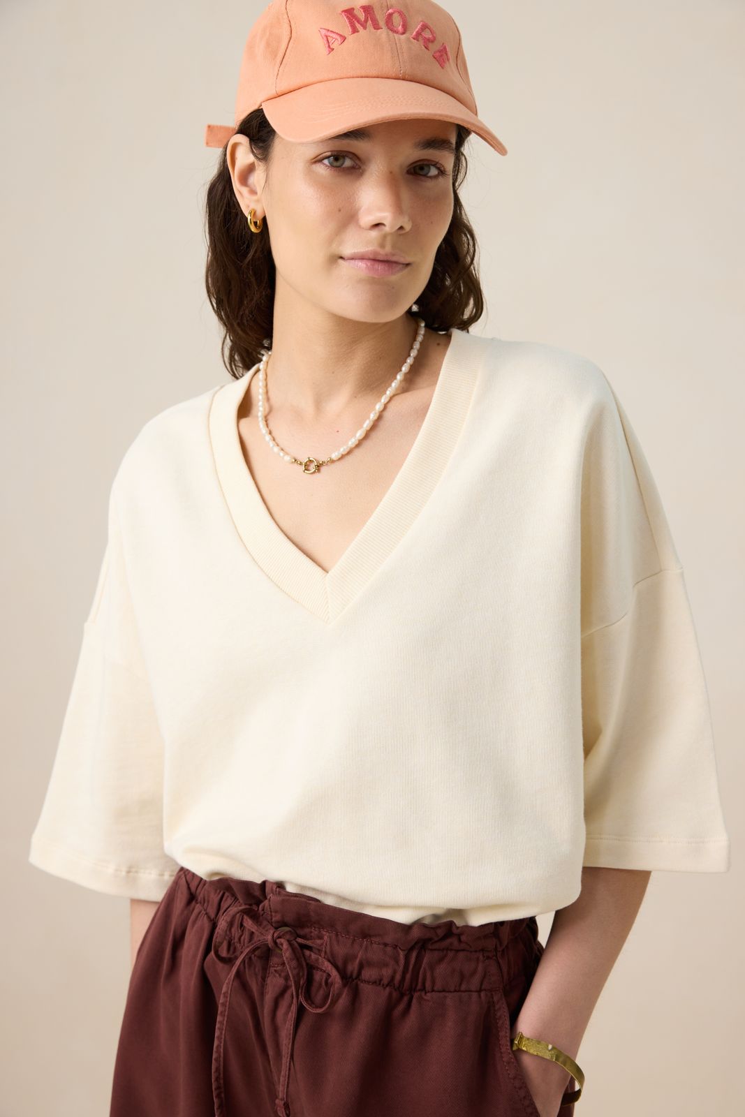 Bruine trui met V-hals