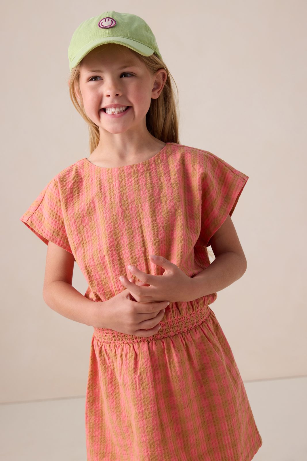 Roze geruite jurk