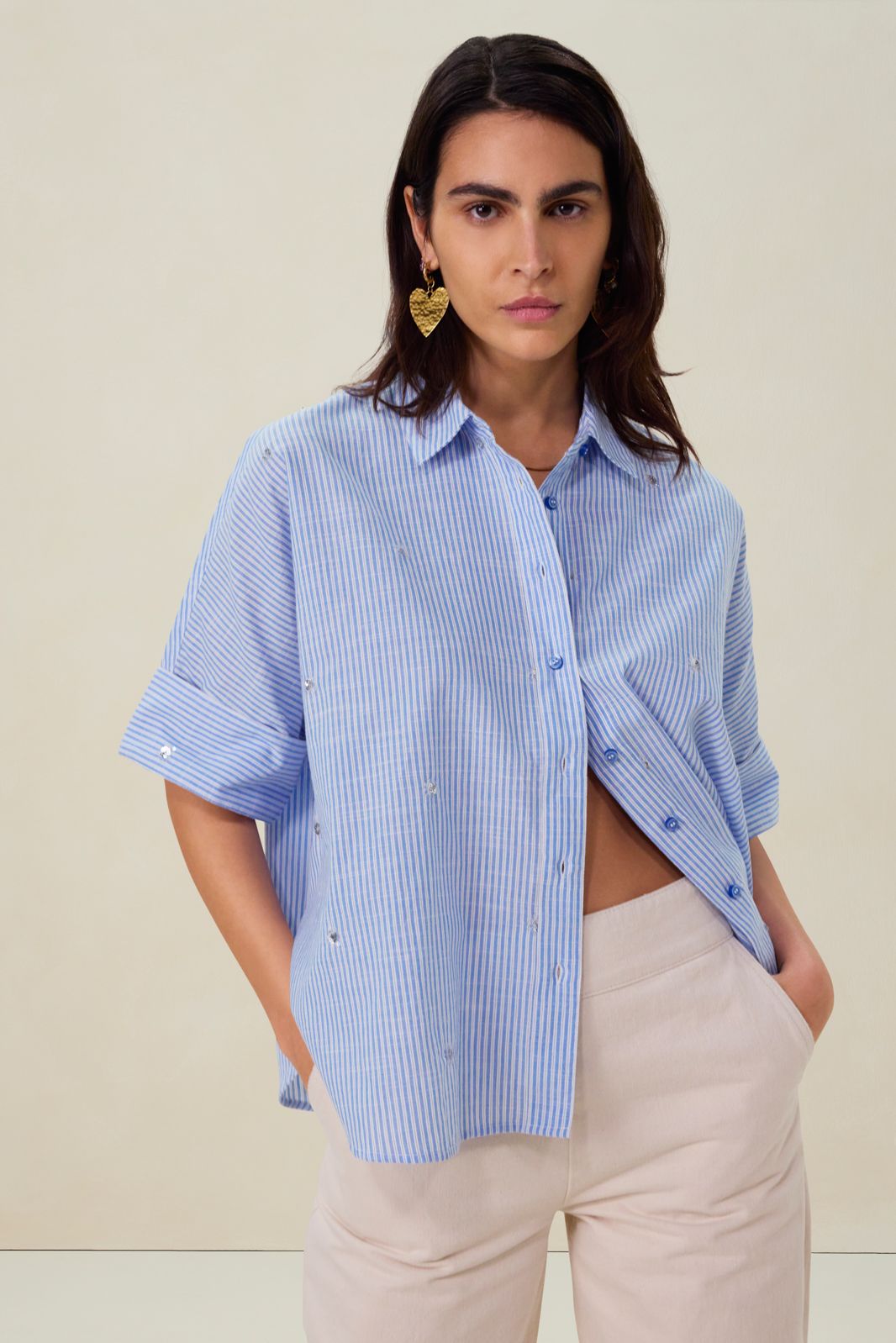 Lichtblauwe cropped denim blouse