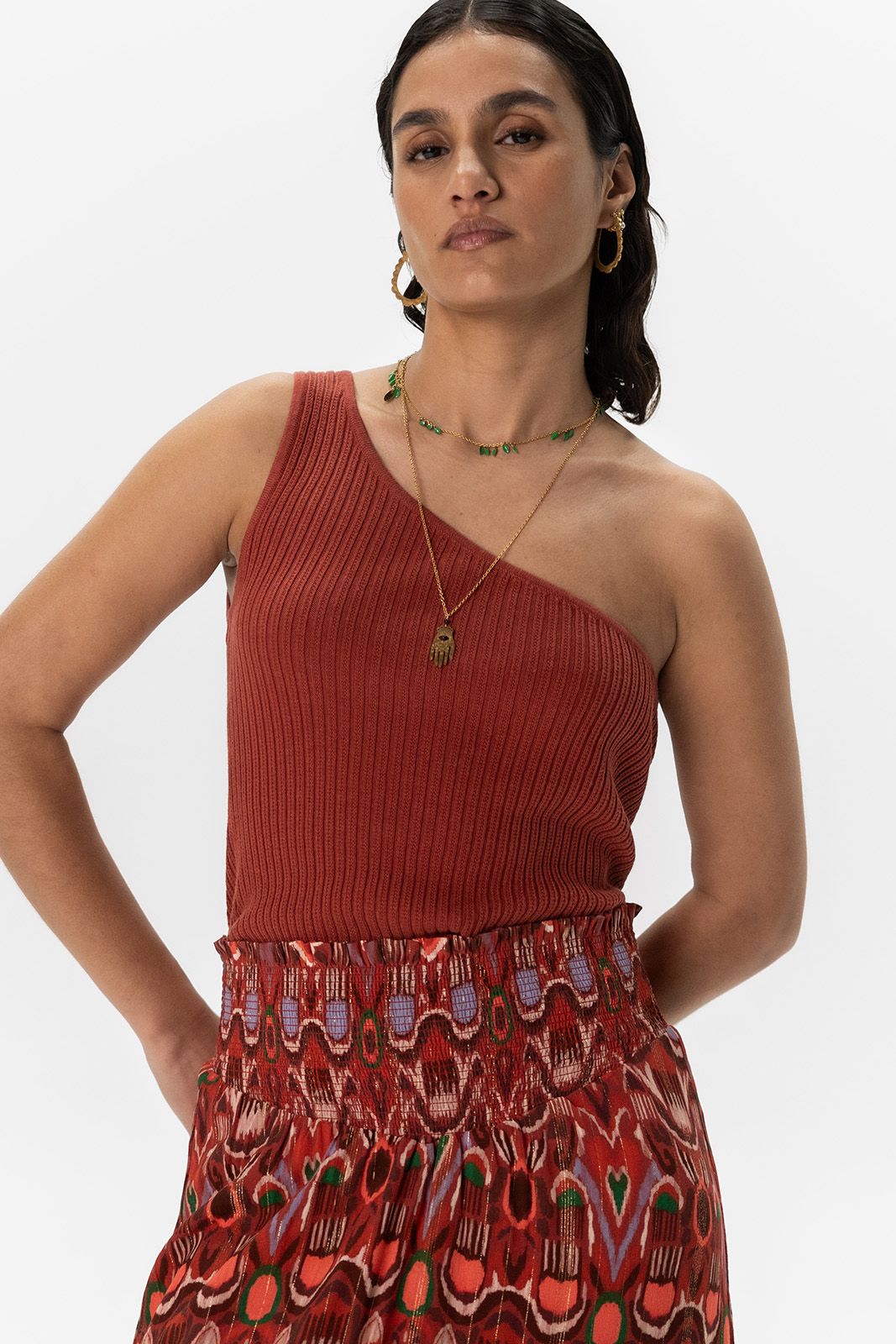 Donkerrode gebreide one shoulder top