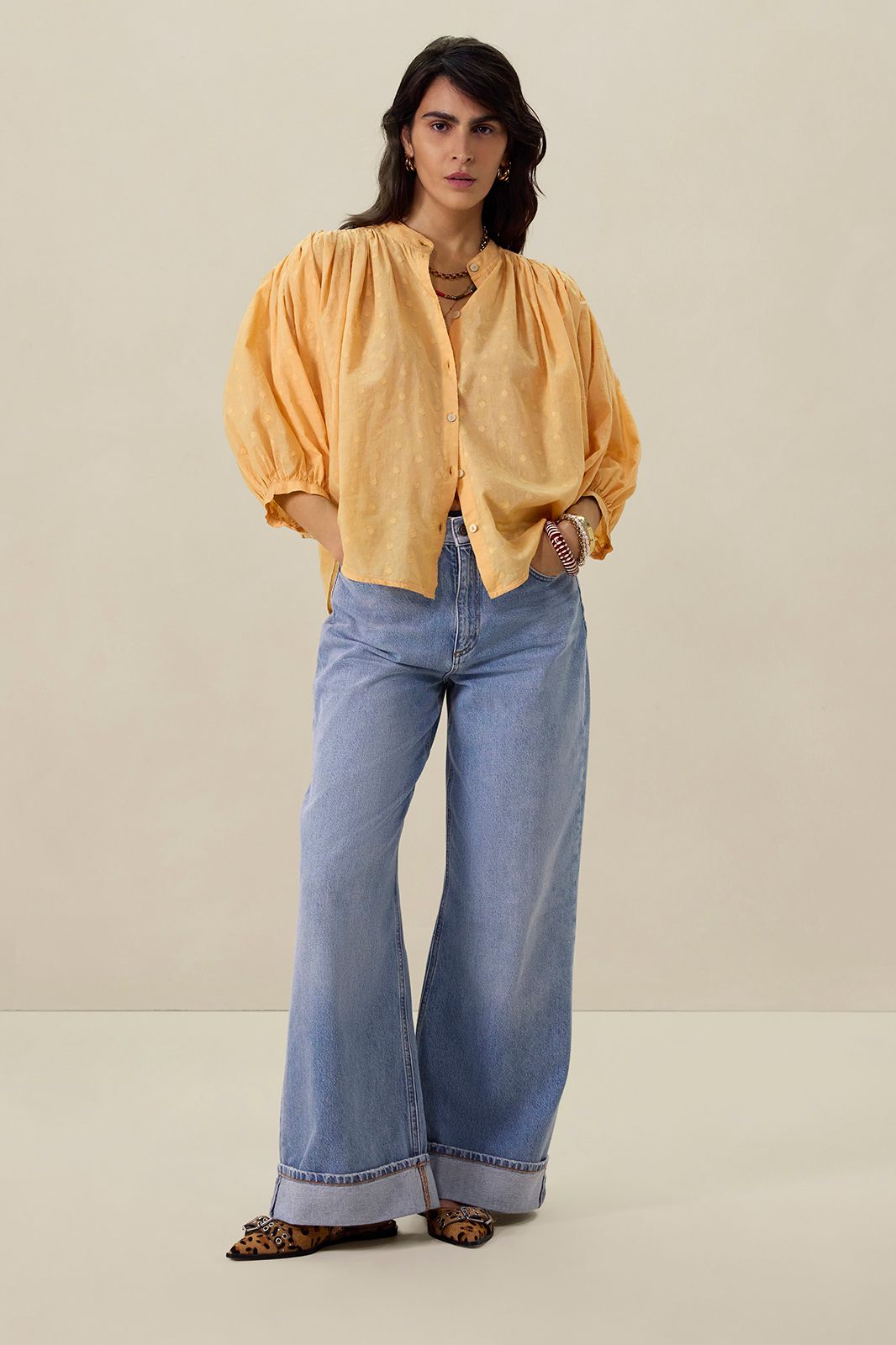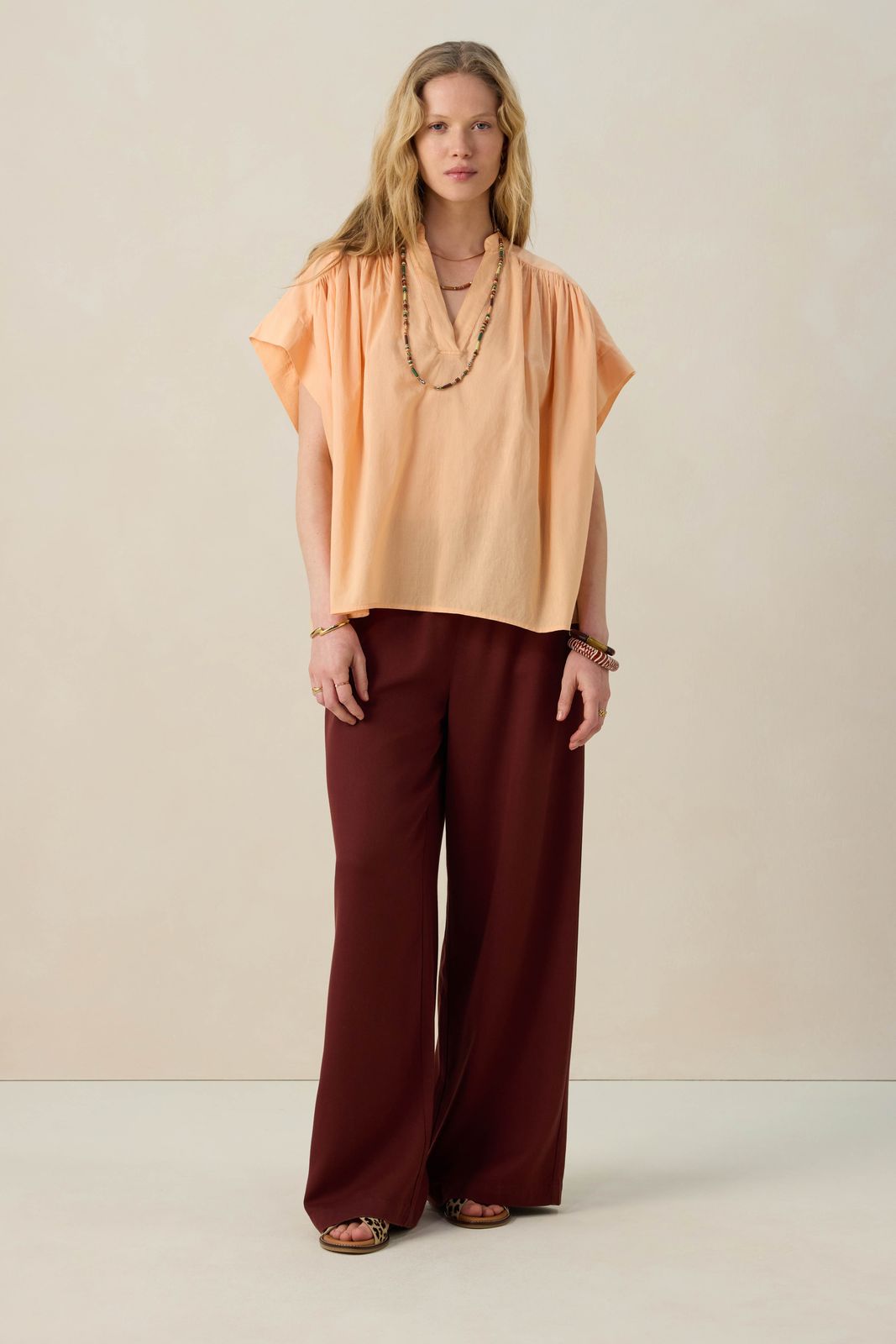 Lichtoranje top met pintuck details