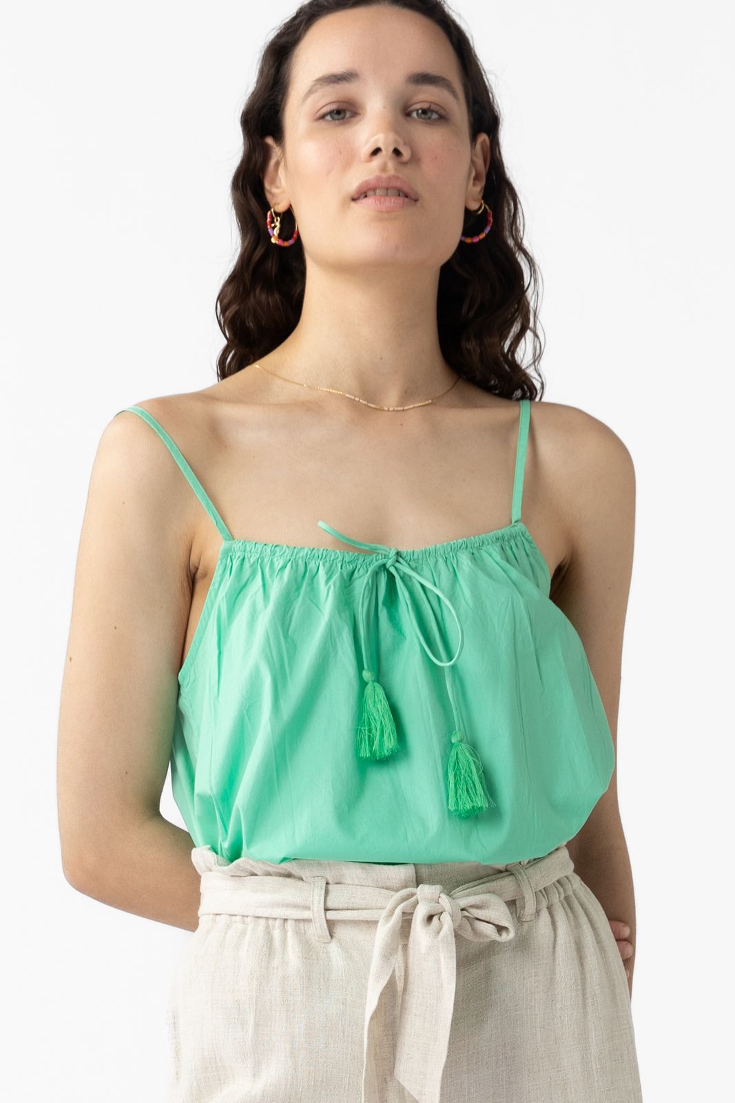 Lichtgroene top met kwastje