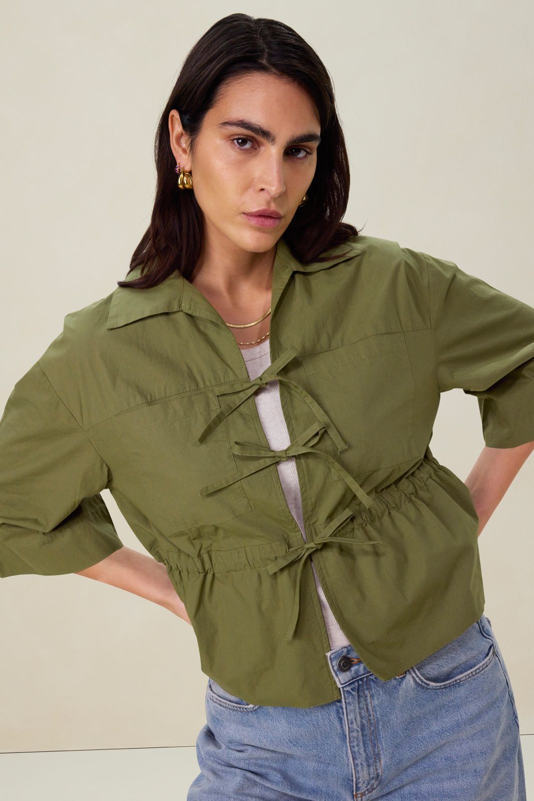 Groene blouse met striksluiting