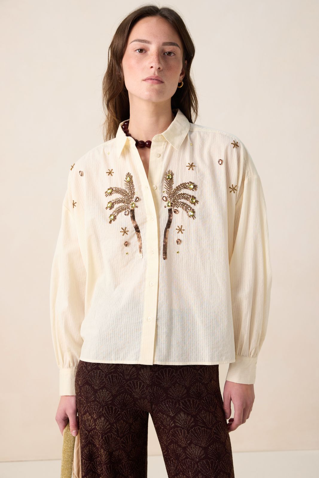 Witte blouse met palmbomen