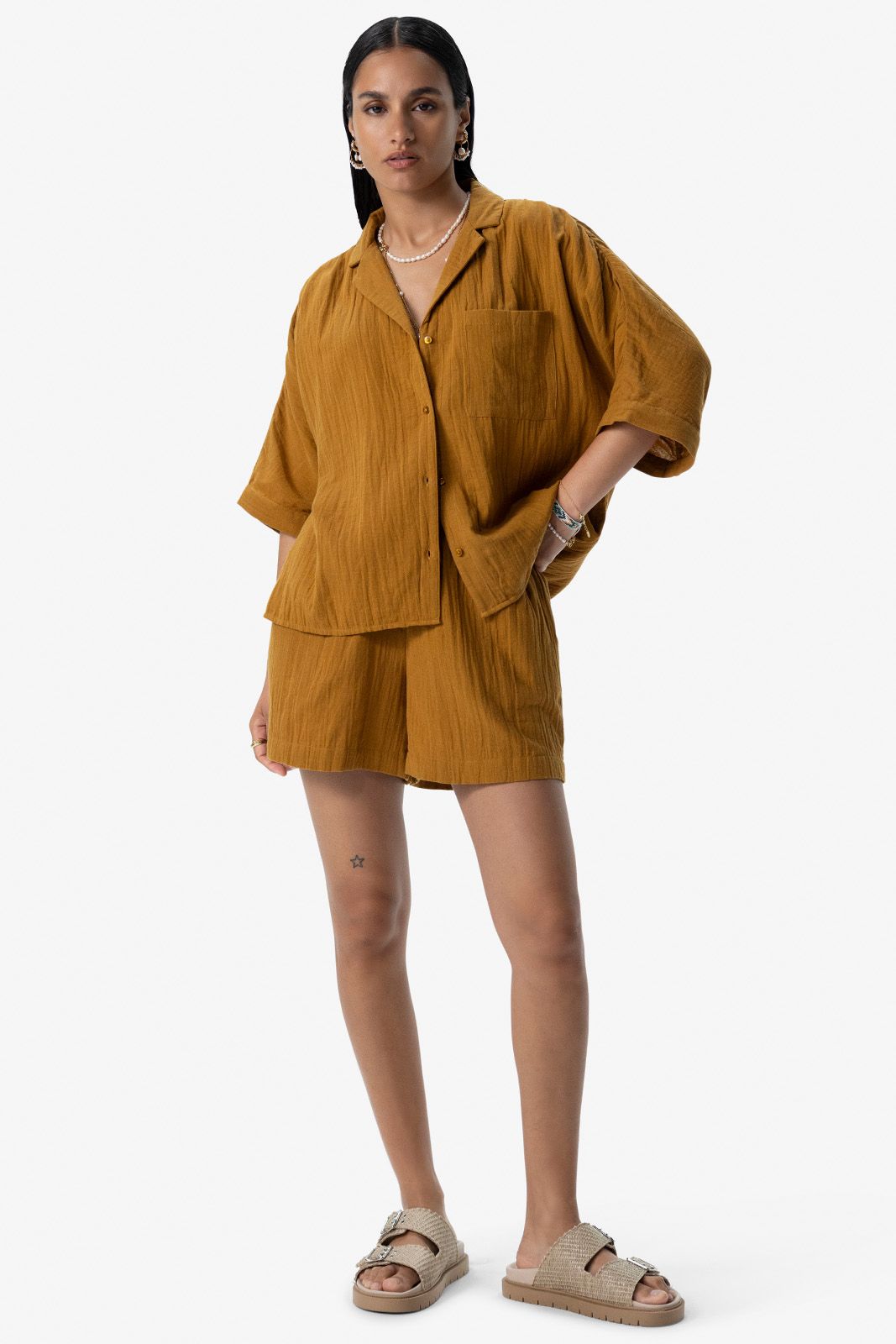 Goudbruine mousseline shorts