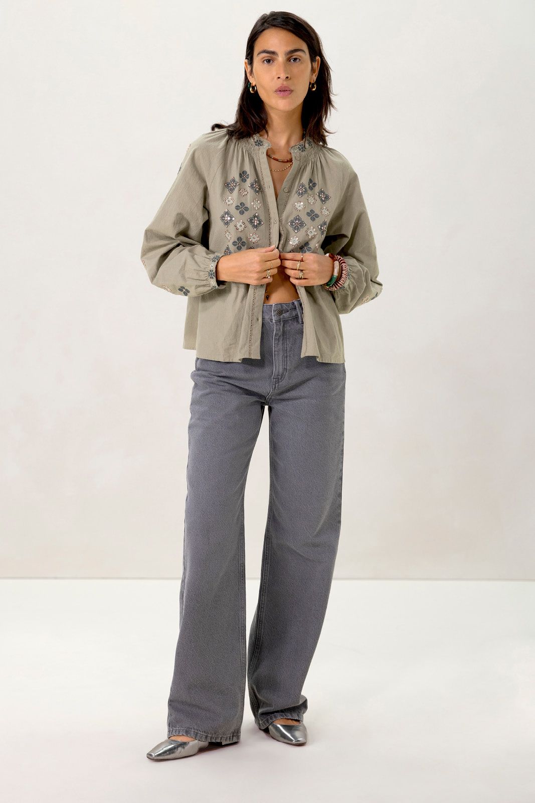 Grijze high waist wide leg jeans
