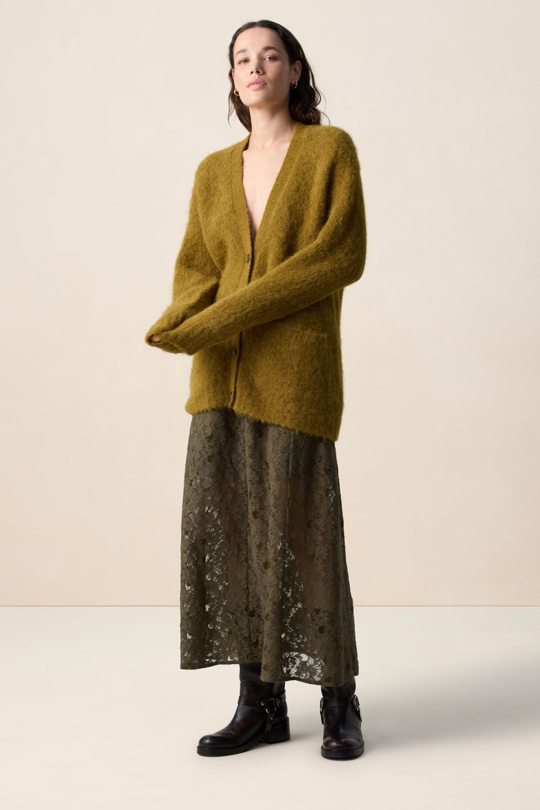Bruine kanten maxi rok