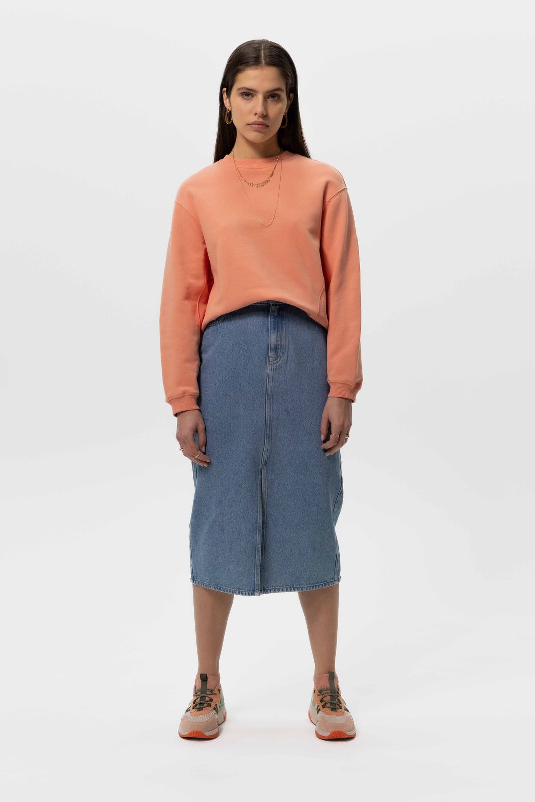 Midi denim rok met split