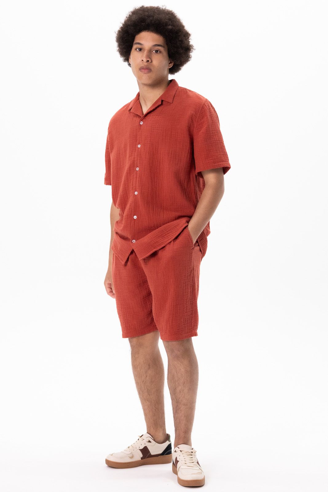 Donkerrode mousseline shorts