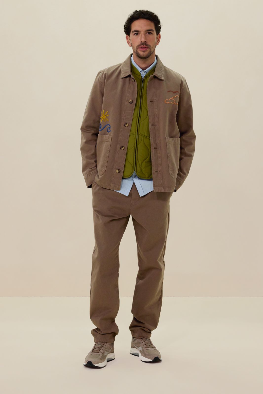 Bruine mid-rise chino met elastische taille
