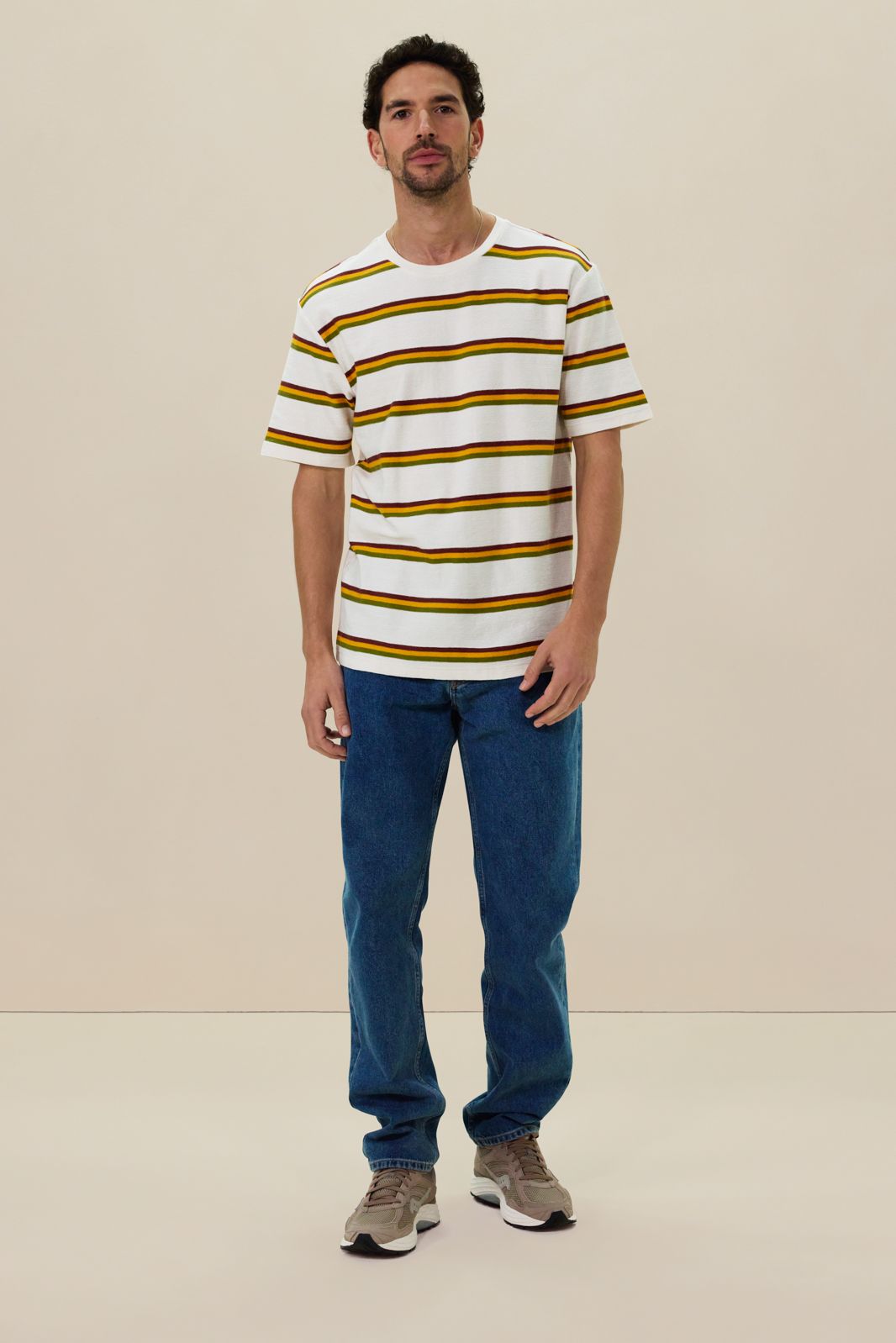 Wit t-shirt met multicolour strepen