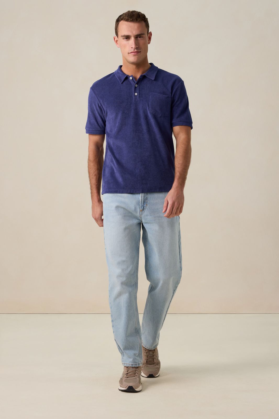 Donkerblauwe badstof polo