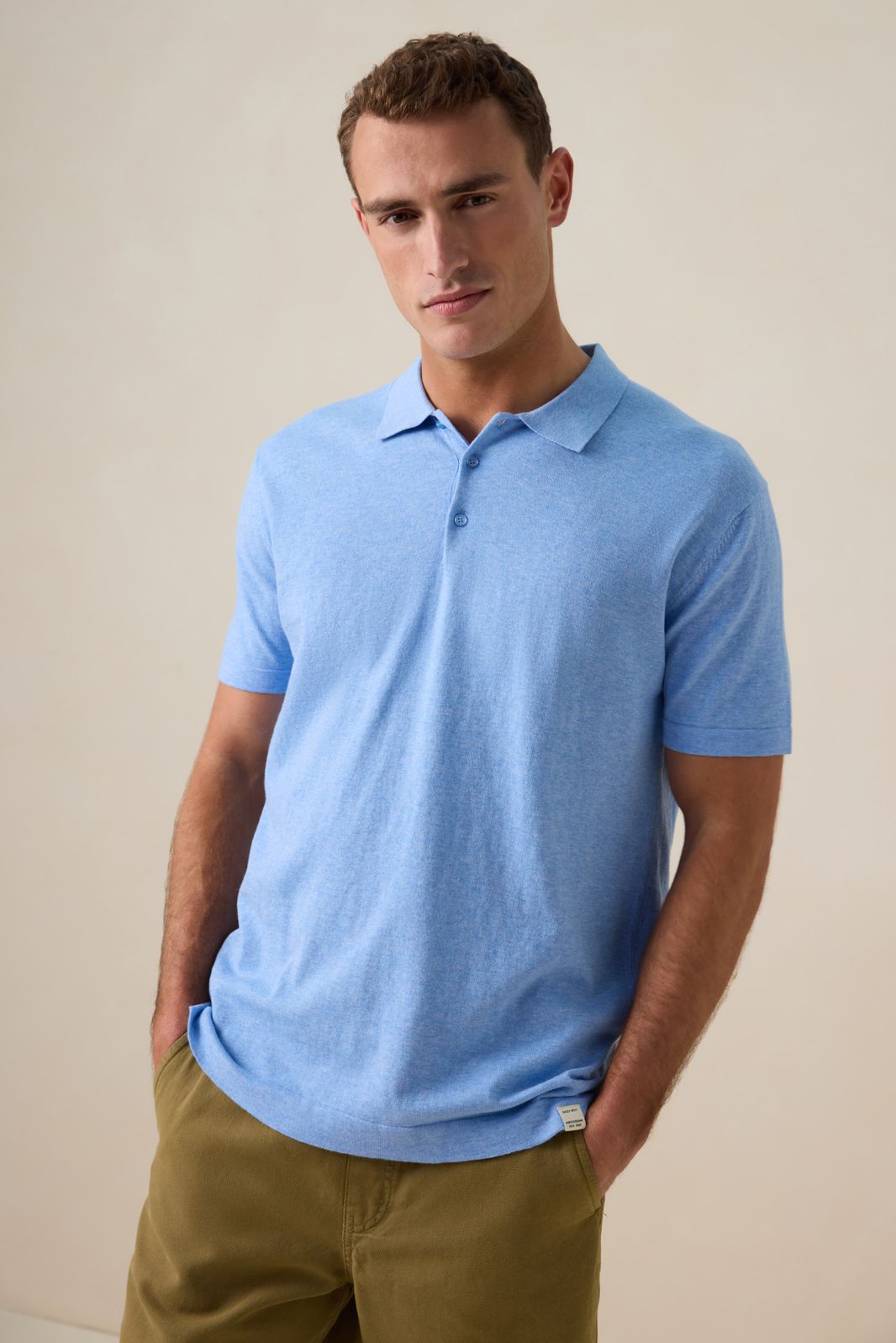 Blauwe gebreide polo