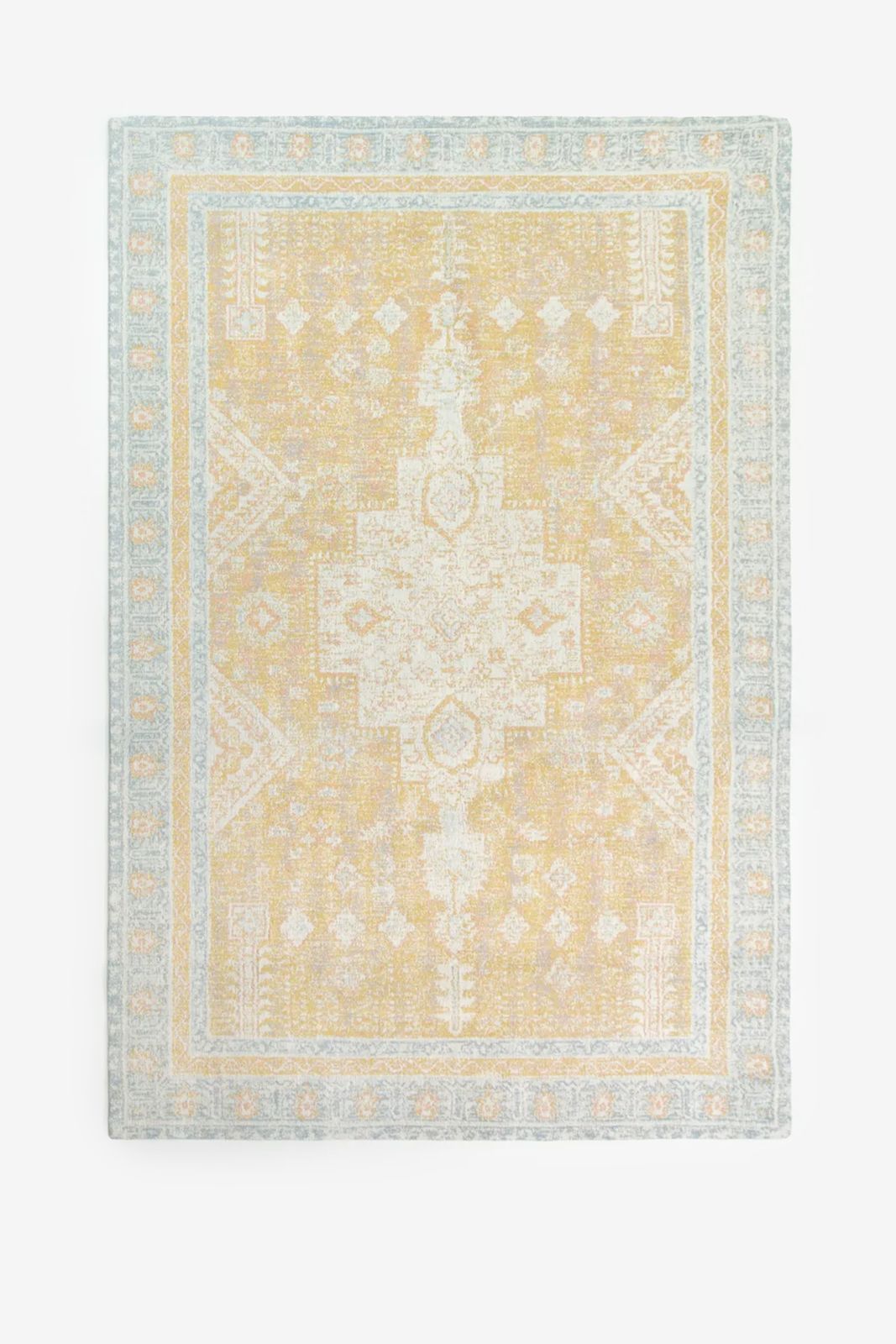 Lichtgeel vloerkleed met print
