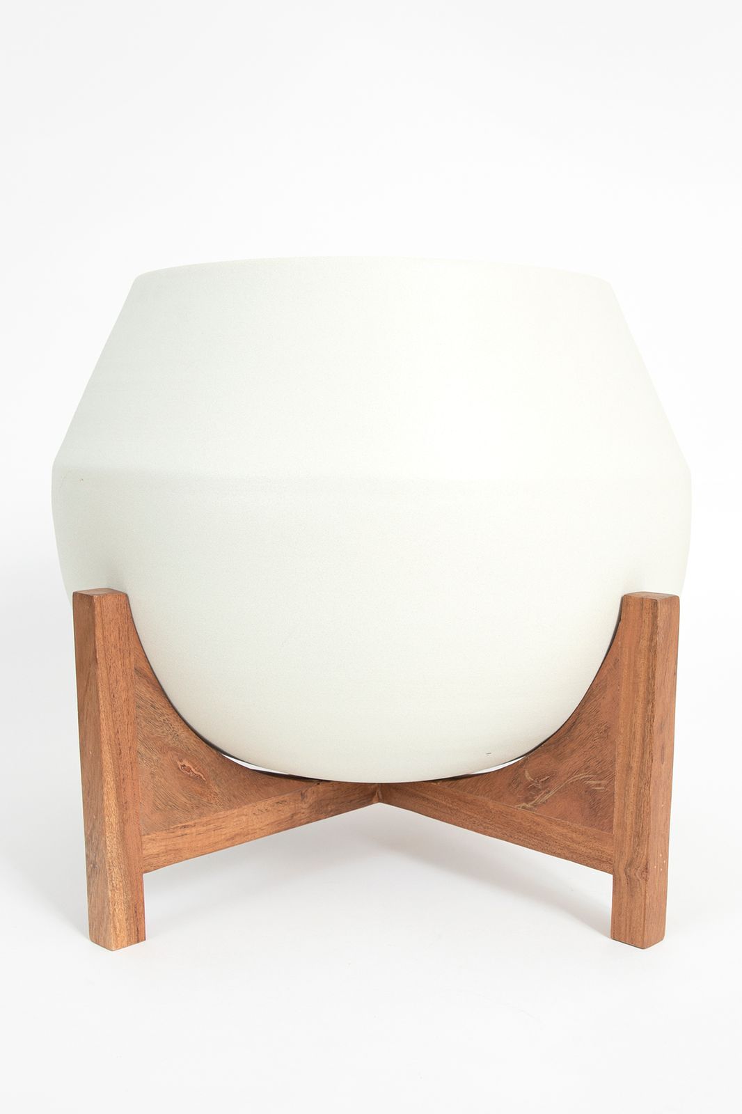 Witte plantenpot met houten standaard