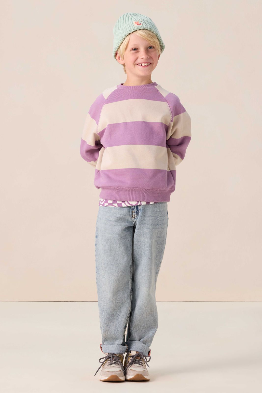 Lichtpaarse sweater met artwork