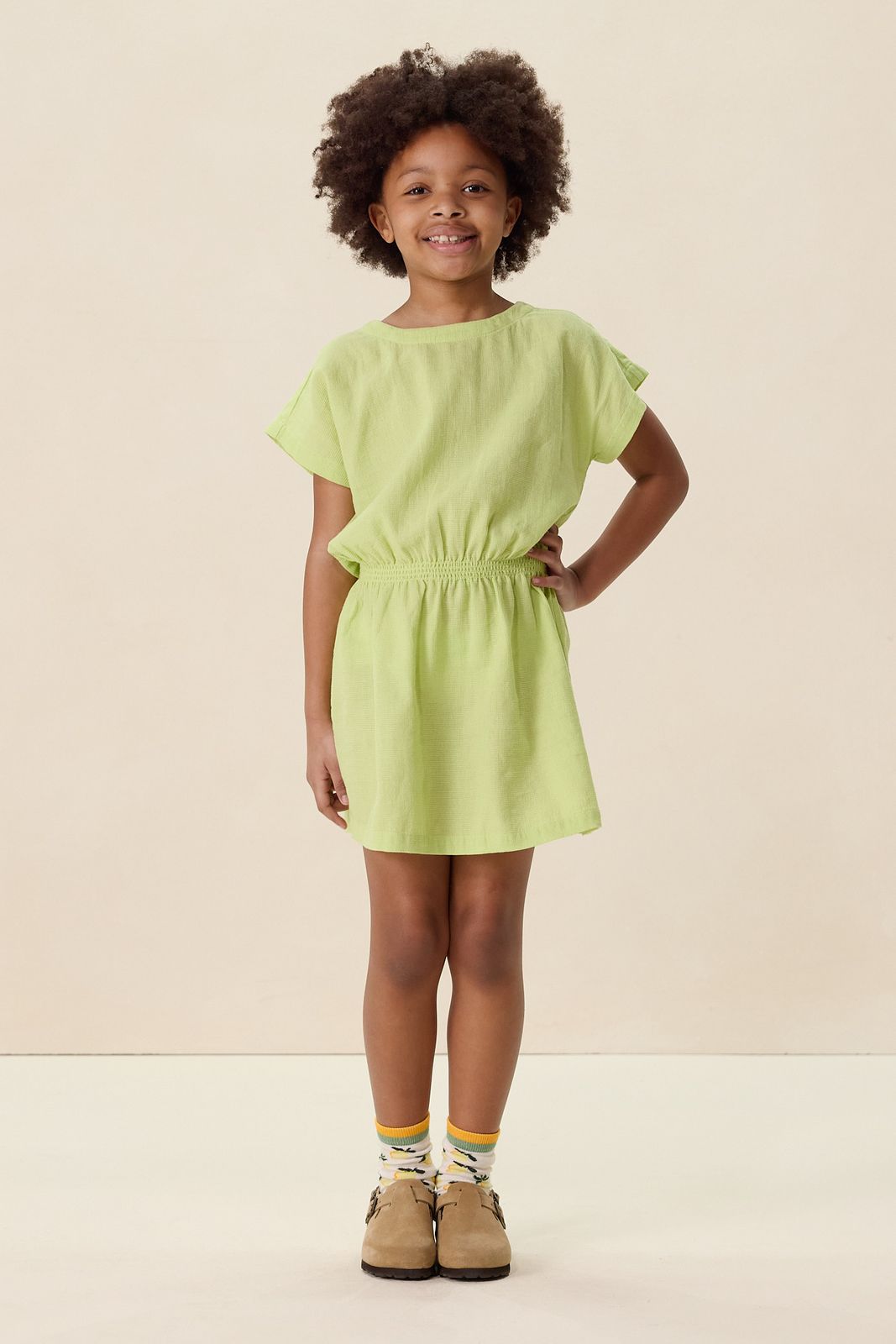 Lichtgroene jurk met structuur