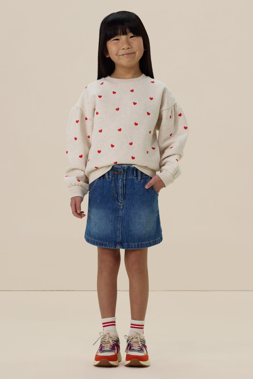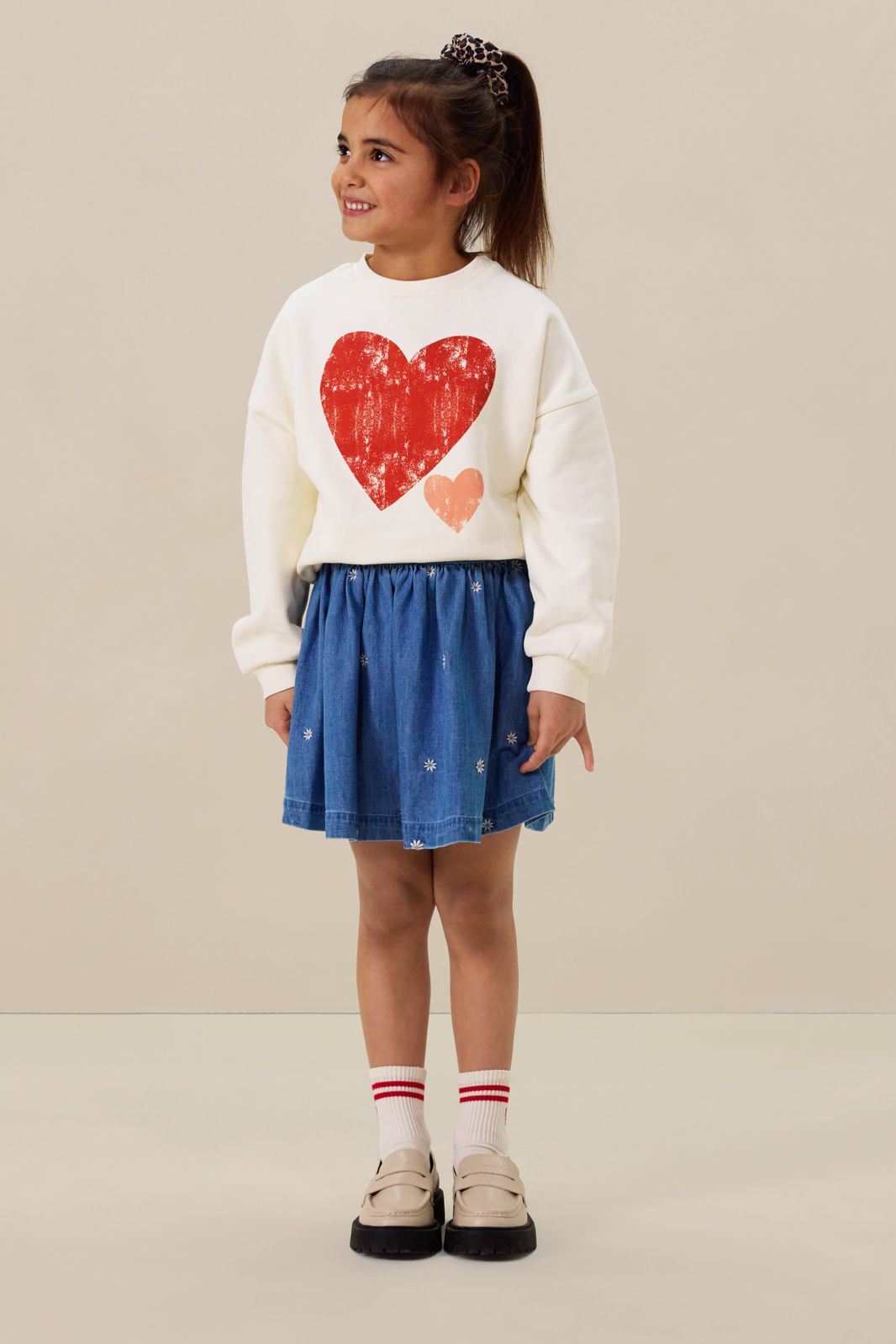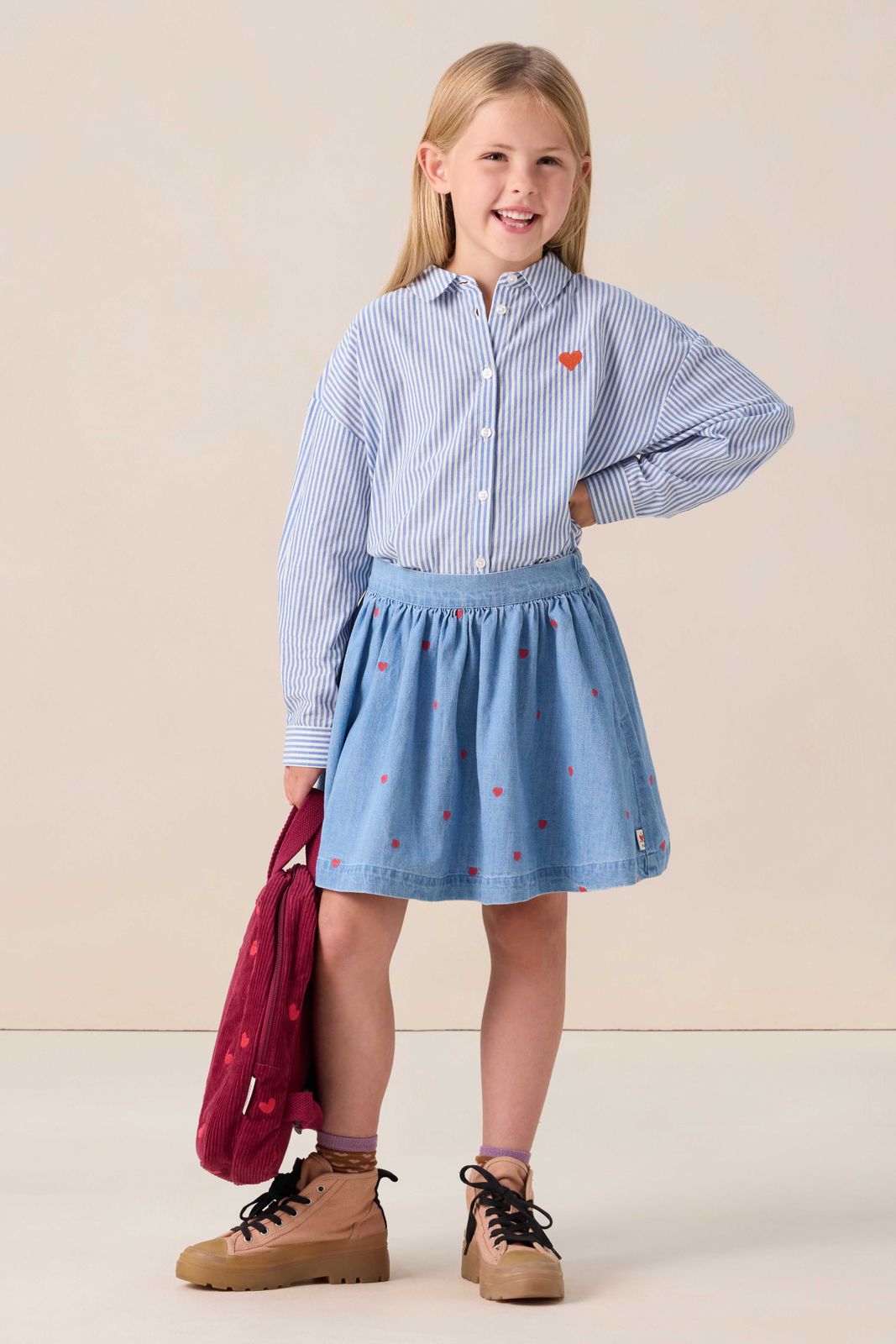 Blauwe denim rok met hartjes embroidery