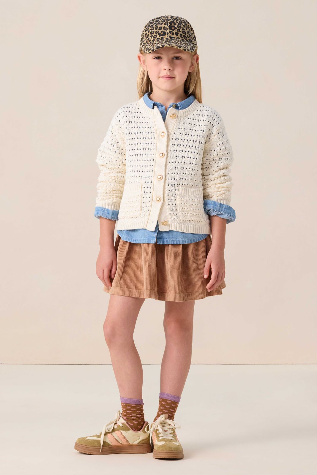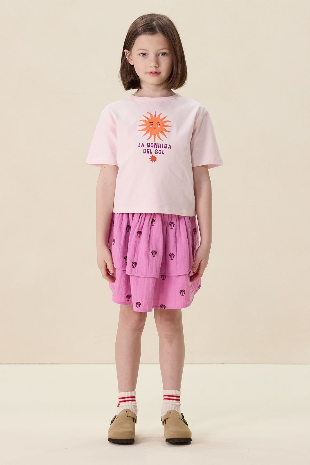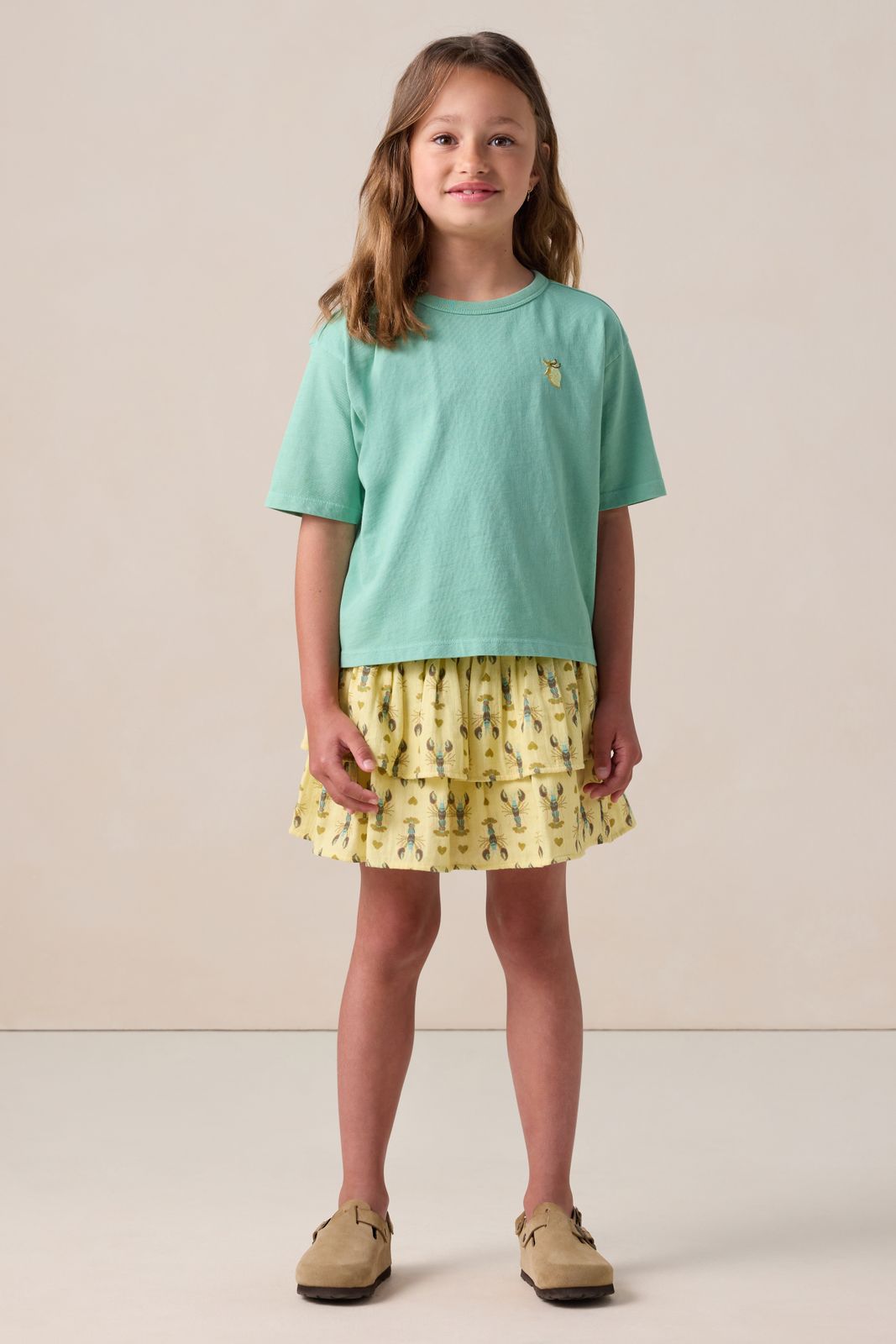 Lichtbruine rok met flamingo embroidery