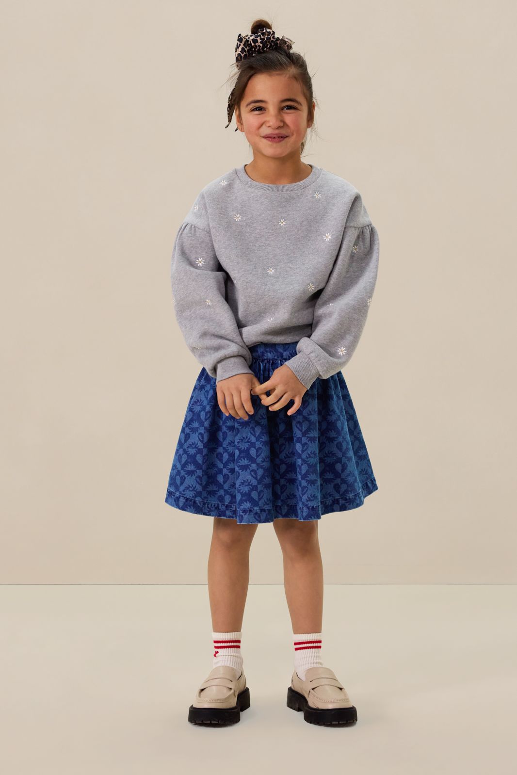 Blauwe rok met madeliefjes embroidery