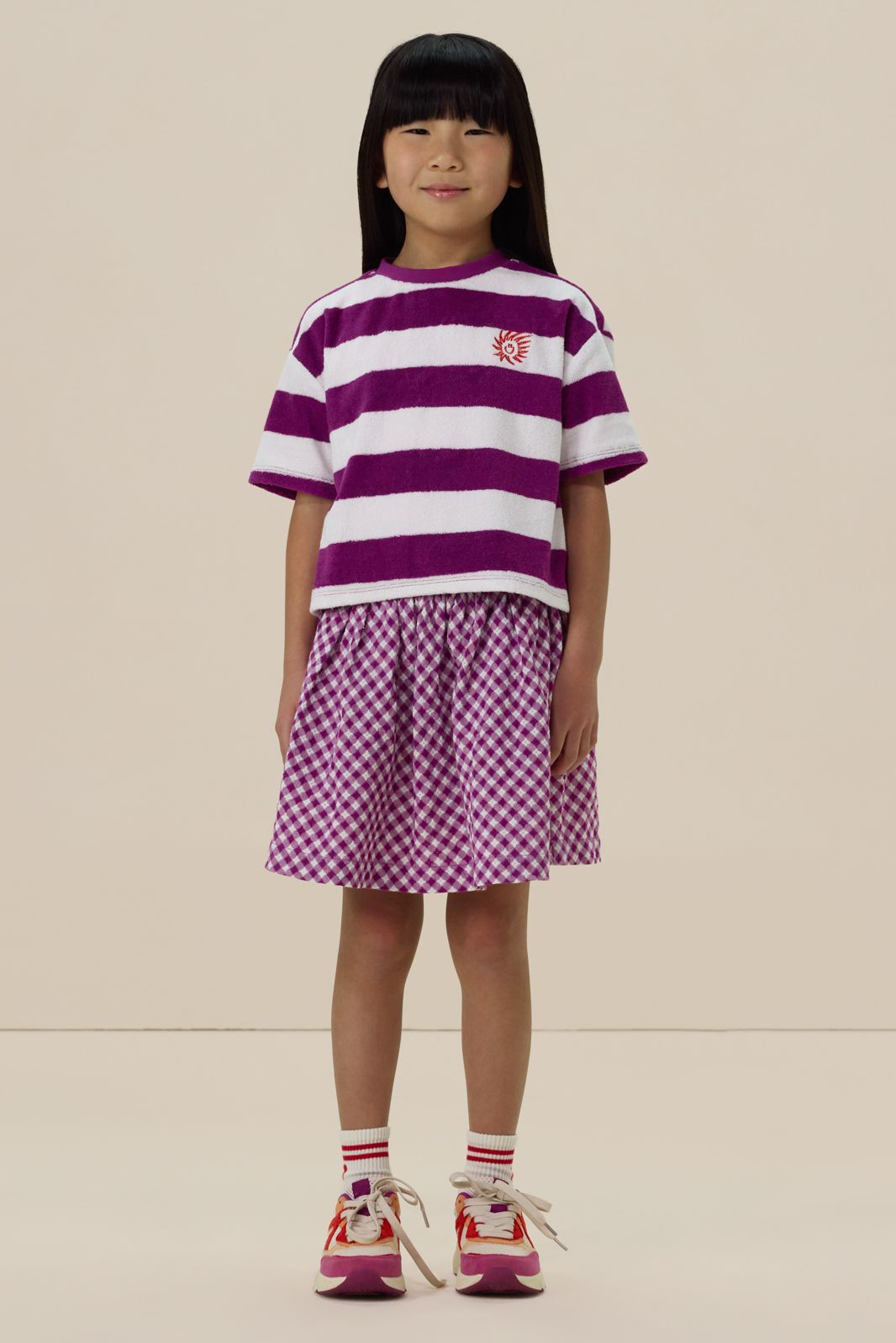 Paarse rok met check-stof