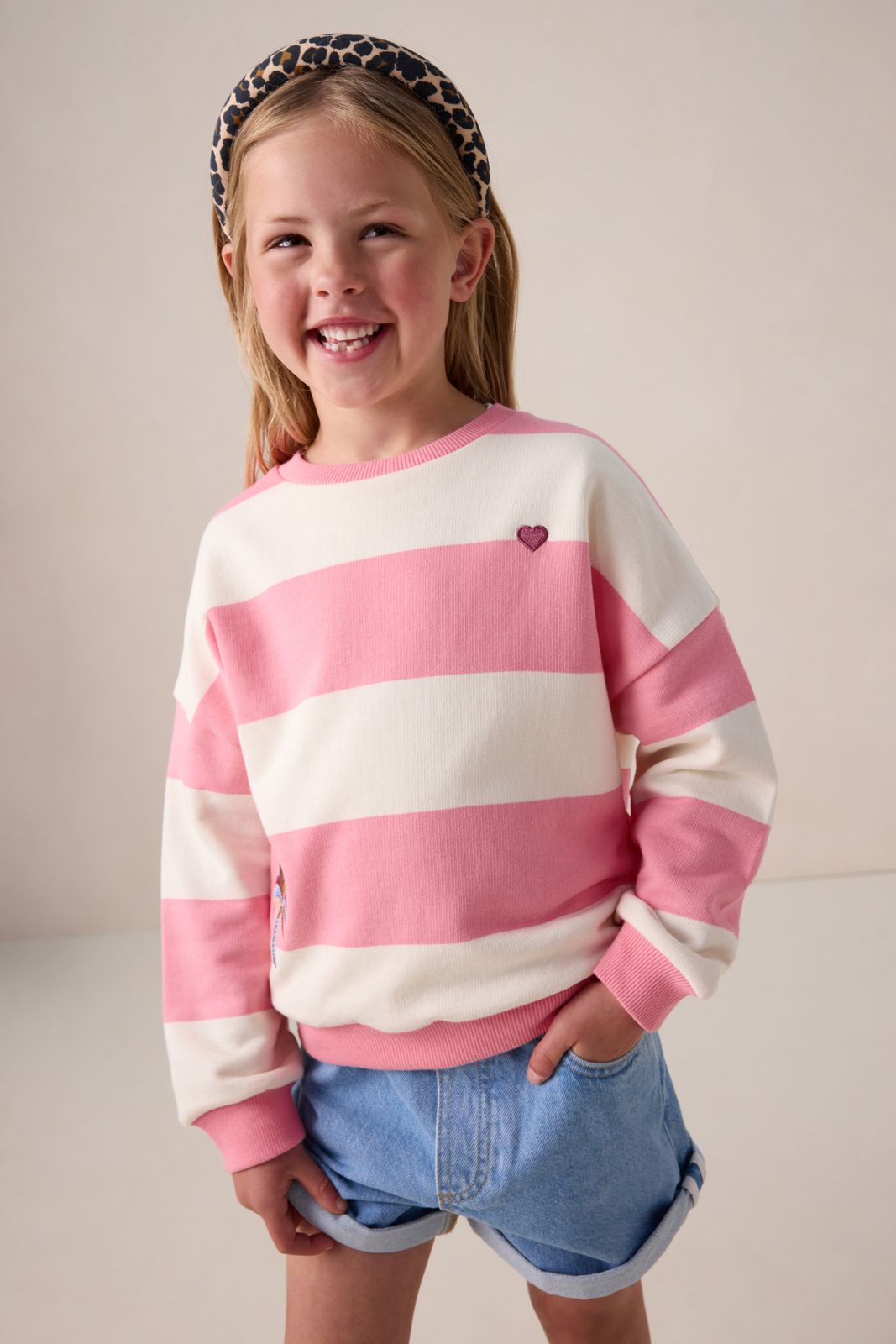 Lichtroze trui met strepen